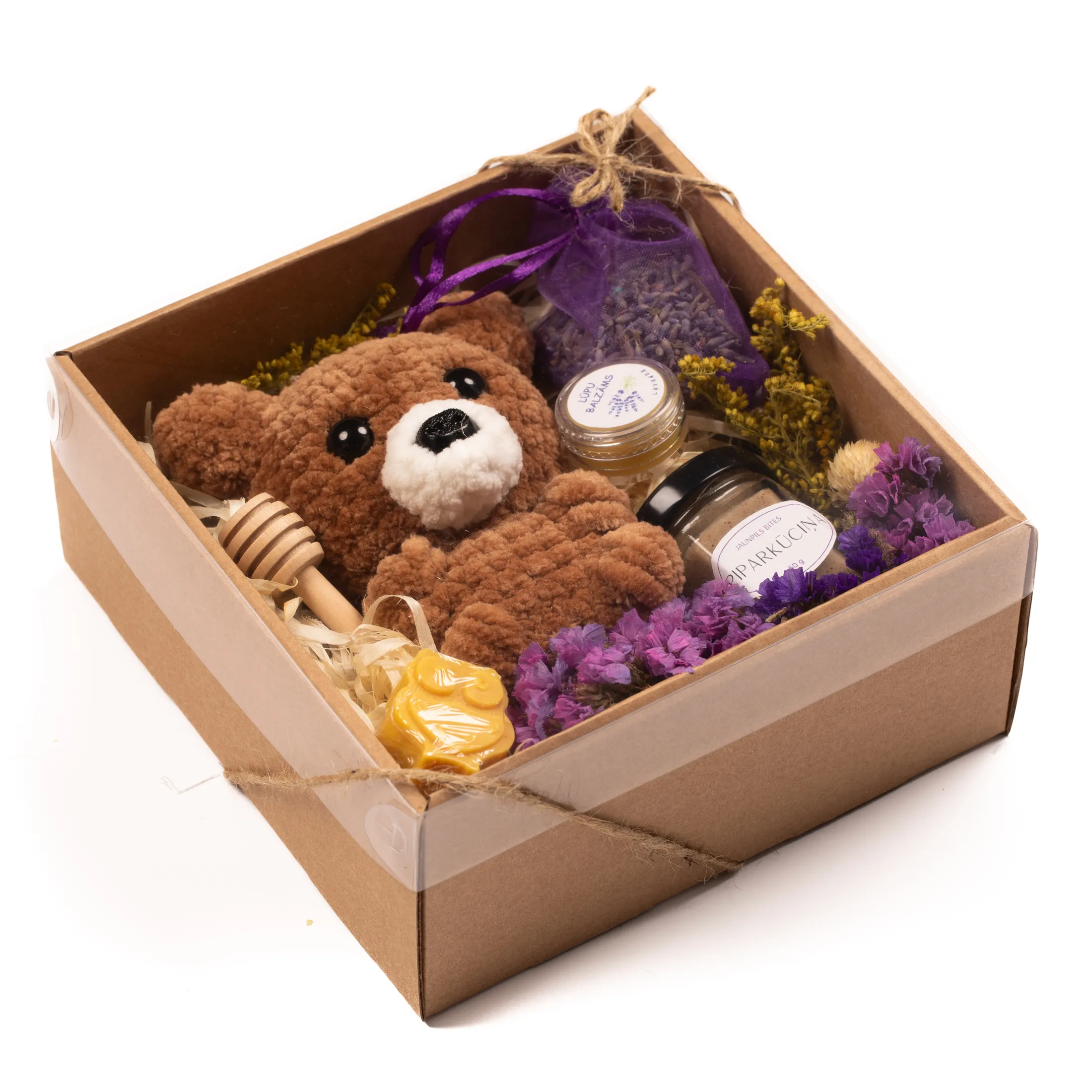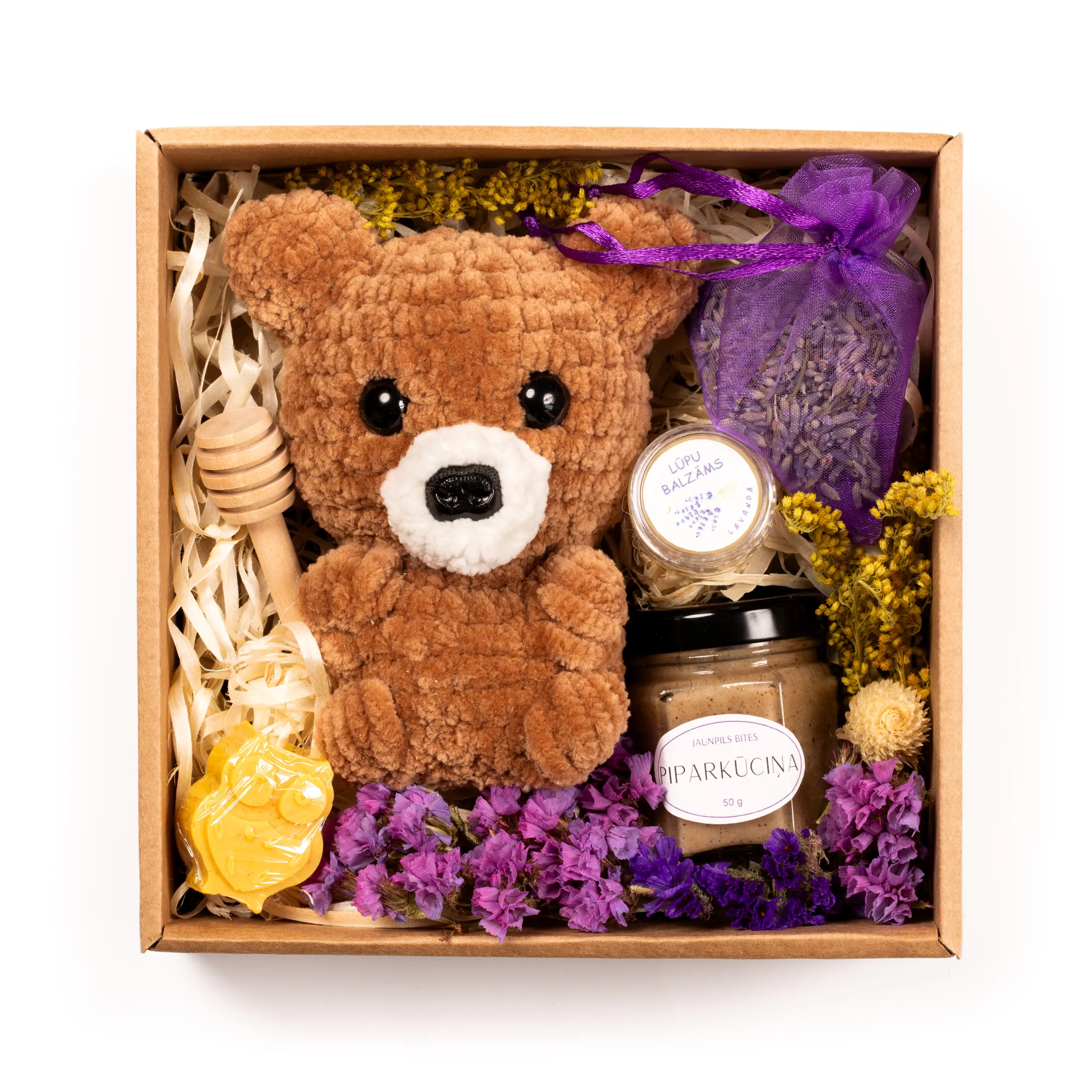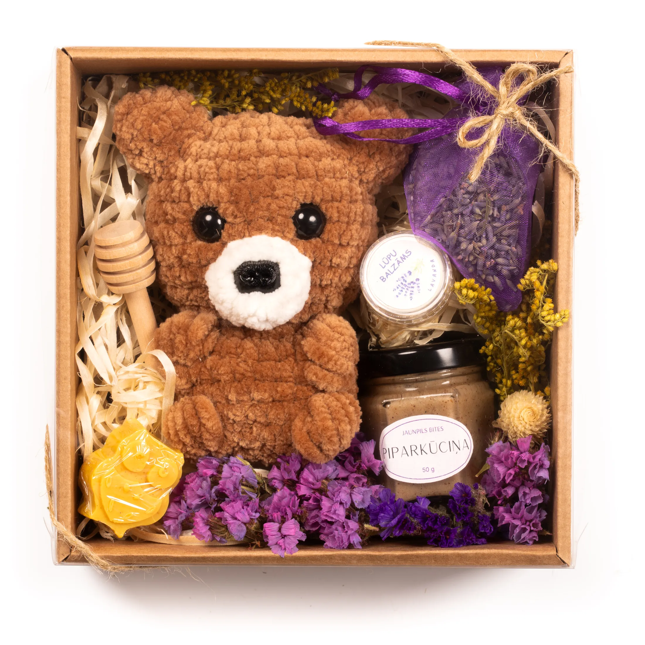 Katra dāvana tiek radīta ar īpašu rūpību, izmantojot mūsu pašu biškopības produktus un pašu audzētas, kaltētas puķes noformējumā.
