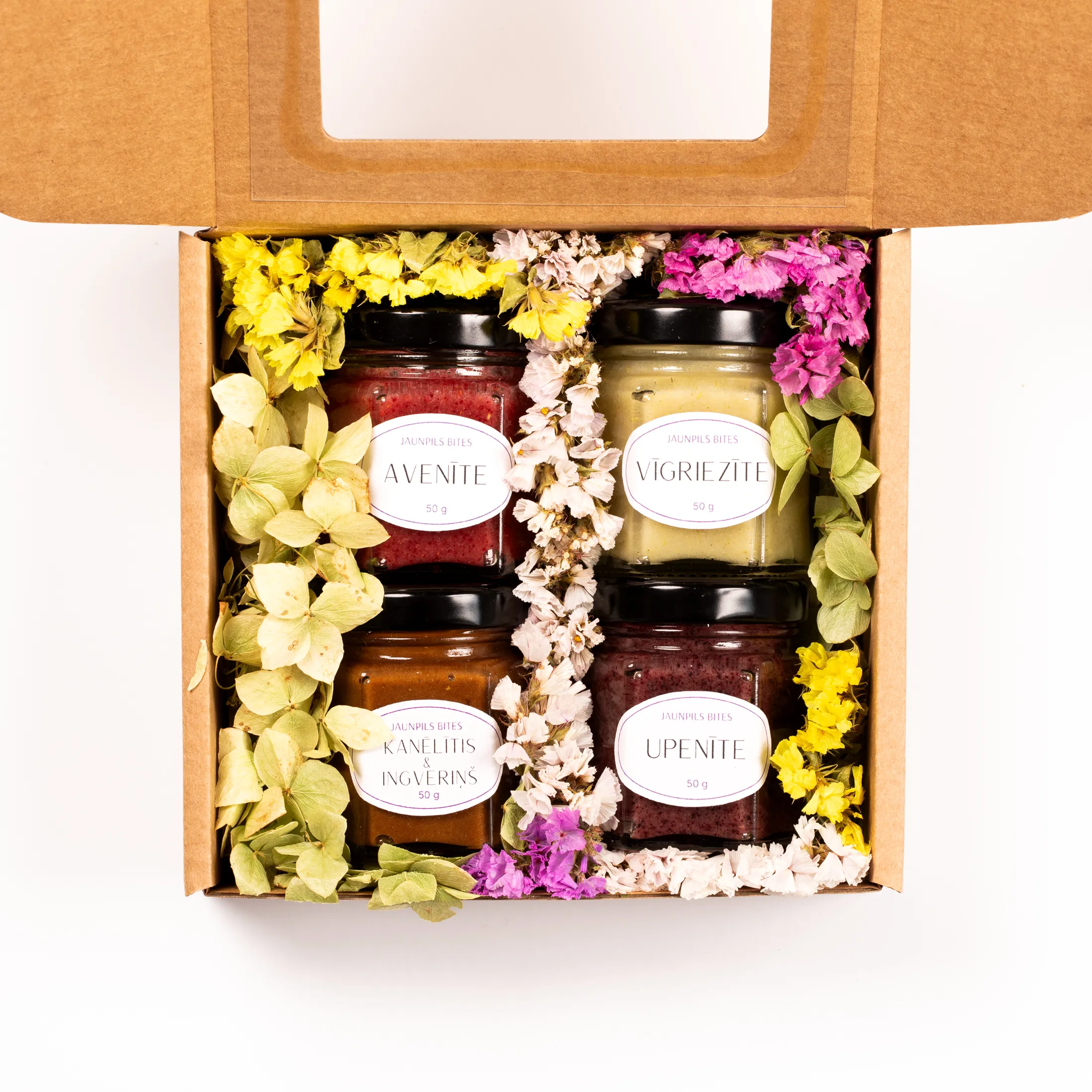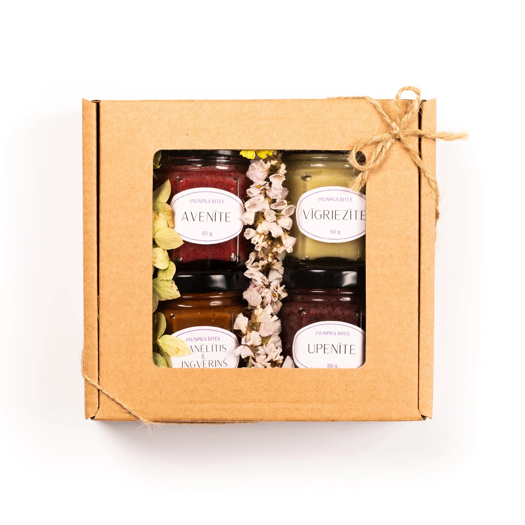 Katra dāvana tiek radīta ar īpašu rūpību, izmantojot mūsu pašu biškopības produktus un pašu audzētas, kaltētas puķes noformējumā.